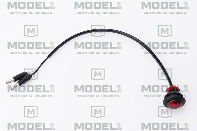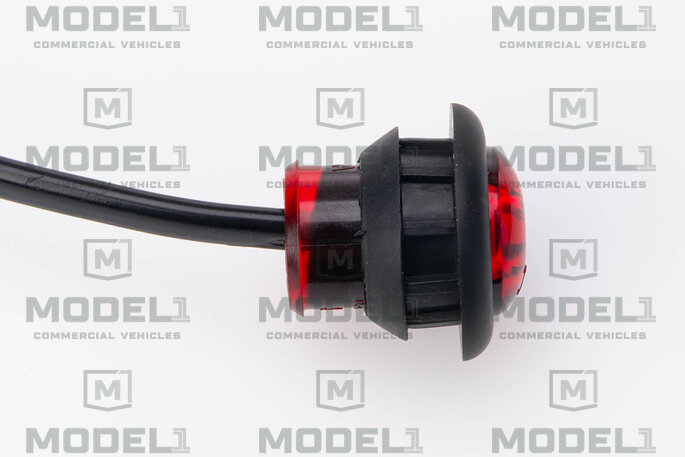12V red round LED clearance/marker light featuring a 2-wire, flush-mount round design. Durable construction ensures long-lasting exterior visibility and compliance.
